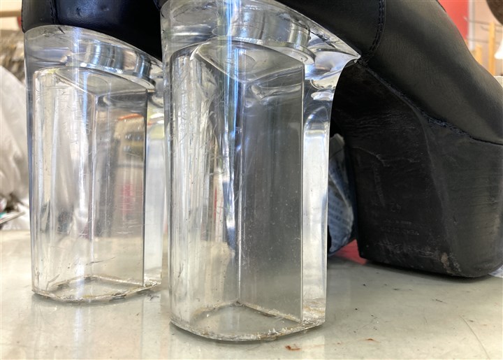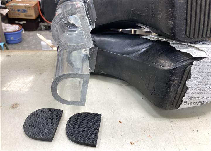 ゴムが外れてしまったヒールに(^^)新たなゴムを貼ります |
