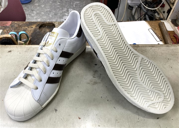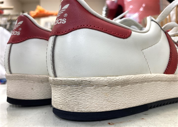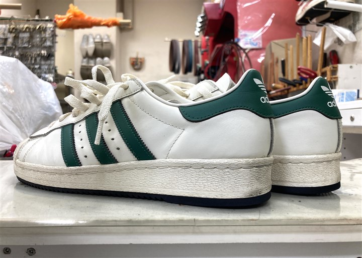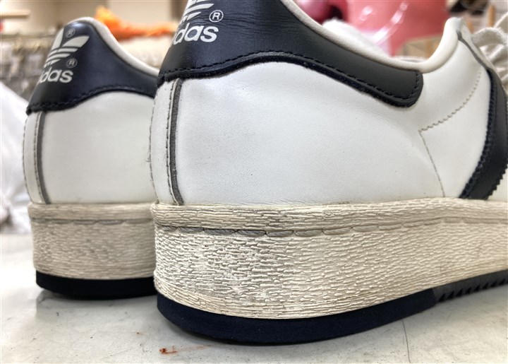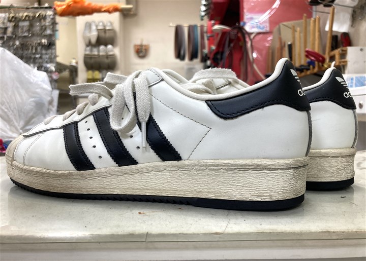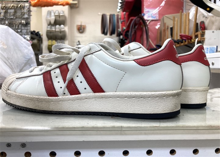 | 2025.12.16 アディダス(adidas)スーパースターのカカト貼替え修理、3足です 以前貼ったソール補強ゴムのメンテナンスです(^^) ![]() ![]() ![]() それぞれシャークソールのカカト部分を削り落とし、タフZで部分貼替えをしています ![]() ![]() ![]() ![]() ![]() ![]() ![]() ![]() ![]() はい完成です(^^) これでカカト部分の耐久性が3倍にUPしました♪ 今回の修理はそれぞれ両足で4400円です 状態によって料金は前後します |