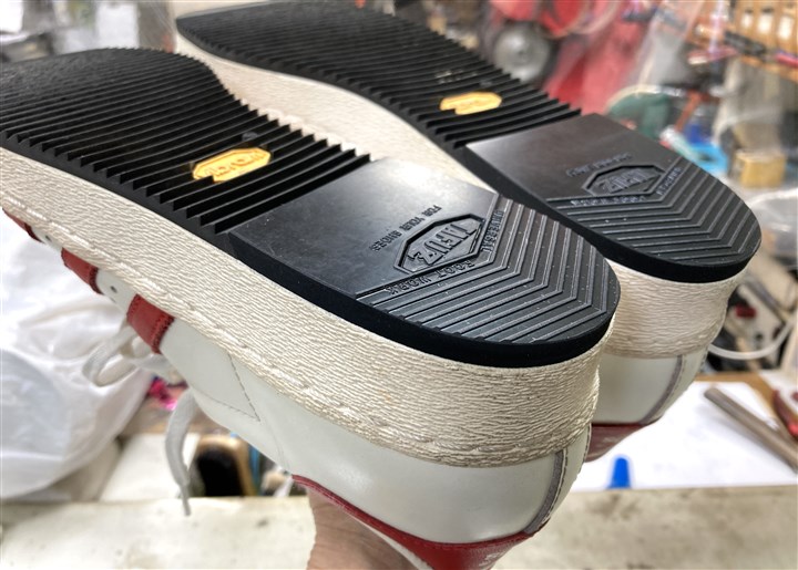 | 2026.1.10 ルイヴィトン(LOUIS VUITTON)のスニーカーソール補強修理です かなりボリューミーなソールなので(^^)貼りつけゴムの大きさがギリギリです ![]() 底面を薄く削り整え、その淵に沿ってゴムを貼っていきます ビブラム342ソール&タフZの組み合わせです ![]() ![]() ![]() ![]() はい完成です(^^)なんとか大きさ足りました こちらのようなソール下部が丸くなっているタイプは(^^)淵に沿ってゴムを貼ってもキレイに仕上がります♪ 今回の修理は342ソールが9900円、タフZが4400円で合計14300円です 状態によって料金は前後します |