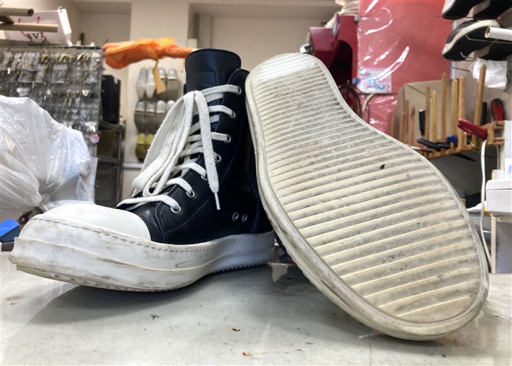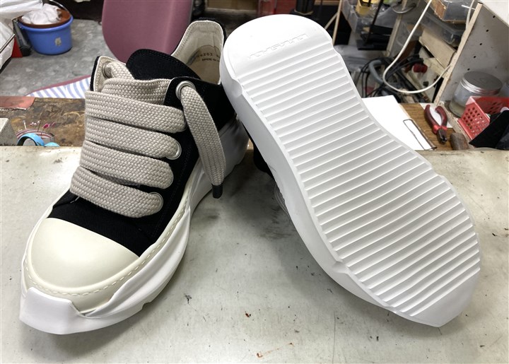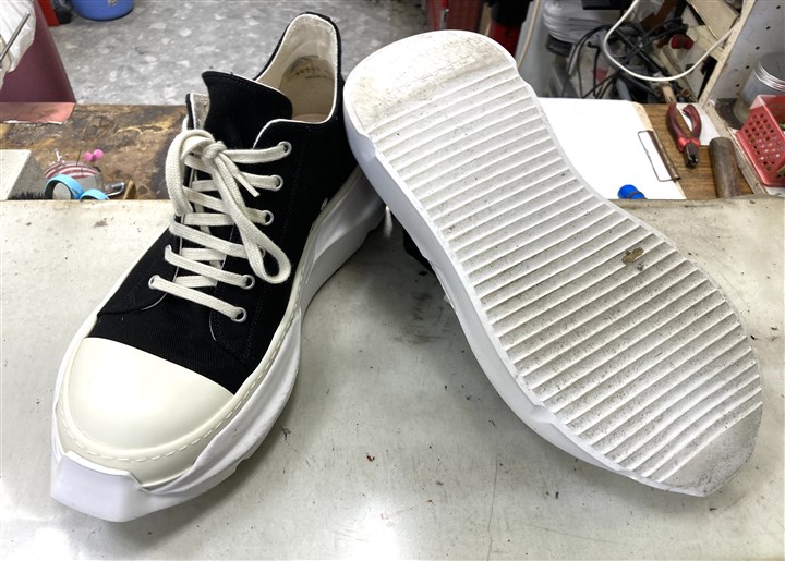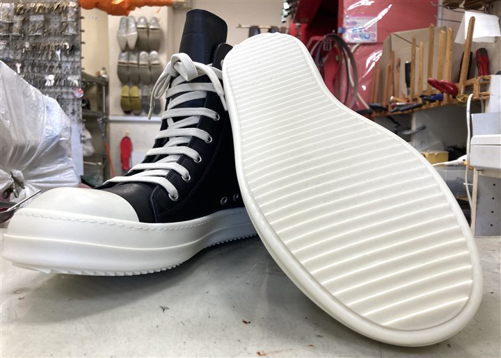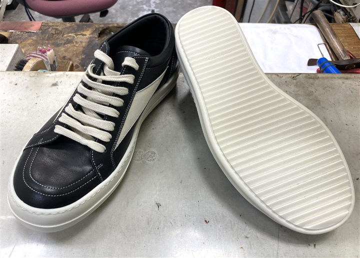 | 2025.12.27 リックオウエンス(RickOwens)スニーカーズのソール補強修理です 今年大ブレイクした(^^)オフホワイトシャークソールを貼ります ![]() 底面のギザギザを削り、溝に沿ってゴムを貼っていきます オフホワイトのビブラム342ソールです ![]() ![]() ![]() ![]() はい完成です(^^) これでガンガン履きましょう♪ 今回の修理は両足で11000円です 状態によって料金は前後します |