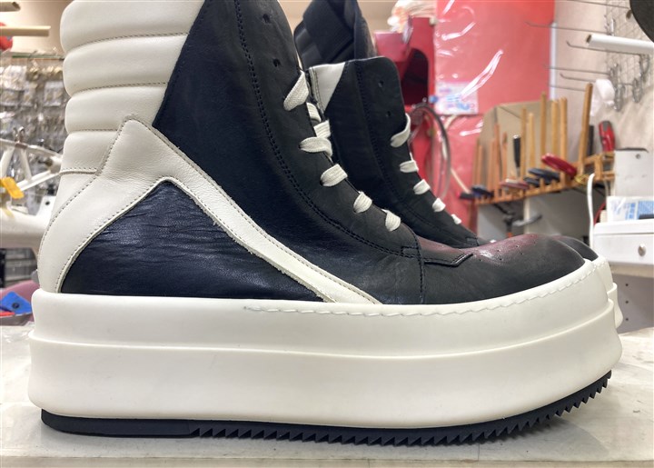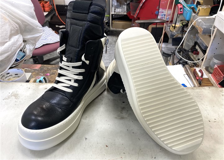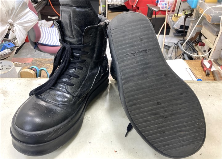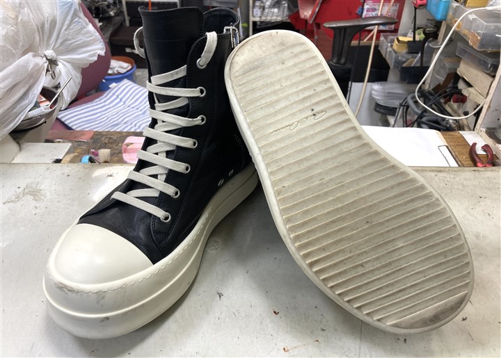 | 2026.1.20 リックオウエンス(RickOwens)メガバンパー ジオバスケットのソール補強修理です ほんの少しだけカカトが減っていますが(^^)ほぼ新品です ![]() 底面のギザギザを削り、段差の淵に沿ってゴムを貼っていきます ビブラム342ソール&タフZの仕様です ![]() ![]() ![]() ![]() はい完成です(^^) 樹脂系のリックソールはこうしてゴムを貼っておくのがオススメです♪ 今回の修理は342ソールが9900円、タフZが4400円で合計14300円です 状態によって料金は前後します |