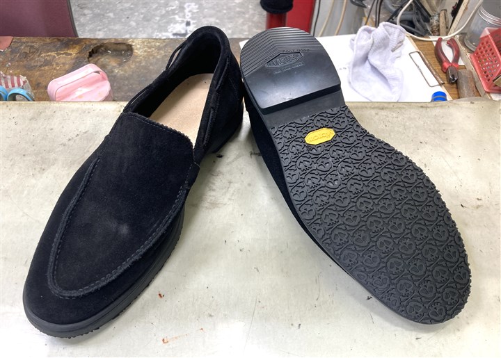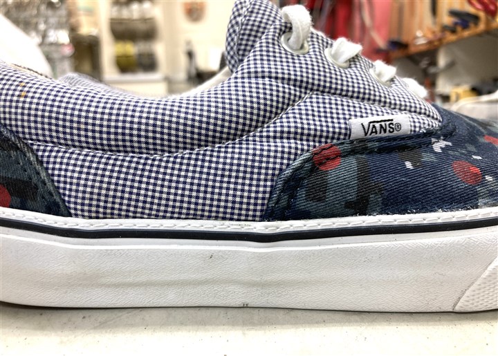| 2026.1.10 VANS(バンズ)のスニーカーのソール側面ステッチ修理&ソール補強です 側面の剥がれを予防し(^^)底面のすり減りも予防します ![]() ![]() 側面は上部淵をミシンで縫い付けていきます ![]() ![]() ![]() ![]() はい完成です(^^) ![]() ![]() ![]() ![]() これで糸が切れるまで剥がれません♪ 底面は薄く削って整え、淵から少し内側でラインを取り全体にゴムを貼っていきます 今回は6ミリ厚のクレープゴムを使いました ![]() ![]() ![]() ![]() はい完成です(^^) これで側面も底面もバッチリです♪ 今回の修理は側面ステッチが4400円、底補強が7700円です 状態によって料金は前後します |