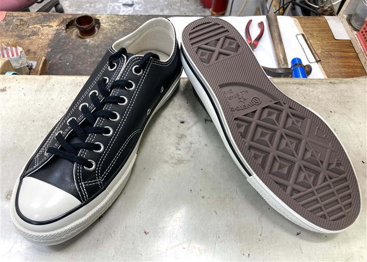 | 2026.1.17 コンバース(CONVERSE)のスニーカーソール補強修理です 新品のうちにゴムを貼ります(^^) ![]() 底面を薄く削り、淵から少し内側でラインを取りゴムを貼っていきます ビブラムスカルソールを使いました ![]() ![]() ![]() ![]() はい完成です こうしてゴムを貼りメンテンスしていけば(^^)ソールが消耗品になりません 今回の修理は両足で9900円です 状態によって料金は前後します |