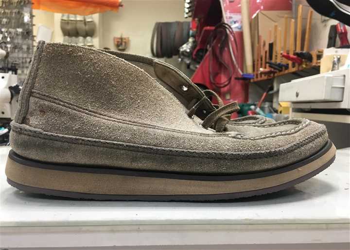 UGG(アグ)のムートンブーツのソール補強です今回は厚型のシャークソールで補強をします(^^) ![]() 接地面の凹凸がけっこう大きいので 一旦フラットに削り落として表面を作ります その上で、今回はご希望で淵に沿って ビブラムS1559ソールを貼っています ![]() ![]() ![]() ![]() 当店では淵から少し内側のラインで ソールを貼ることが多いのですが ご希望なら淵まで貼ることも可能です(^^) ご注文の際にお申し付け下さいませ 今回の修理金額は両足で11000円です 状態によって料金は前後します |