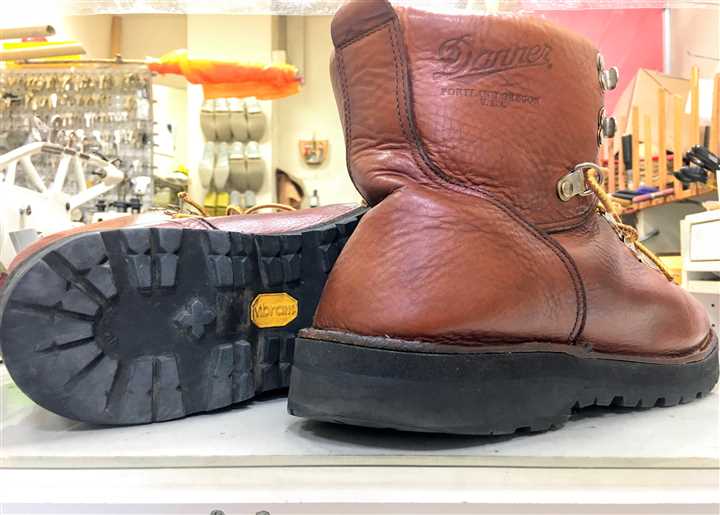 ダナー(Danner)のブーツのカカト修理ですこんなふうに前のほうがあまり減っていなければ カカトだけ部分的に貼り替えます! ![]() ![]() 模様を考えながらソールをカットして 似た模様のカカトゴムで貼り替えています ![]() ![]() これでまだまだ履けますね(^^) こうやってカカトを貼り替えながら履いていただき ソール全体を上手く使い切ってくださいね〜〜 今回の修理金額は両足で4400円です 状態によって料金は前後します |