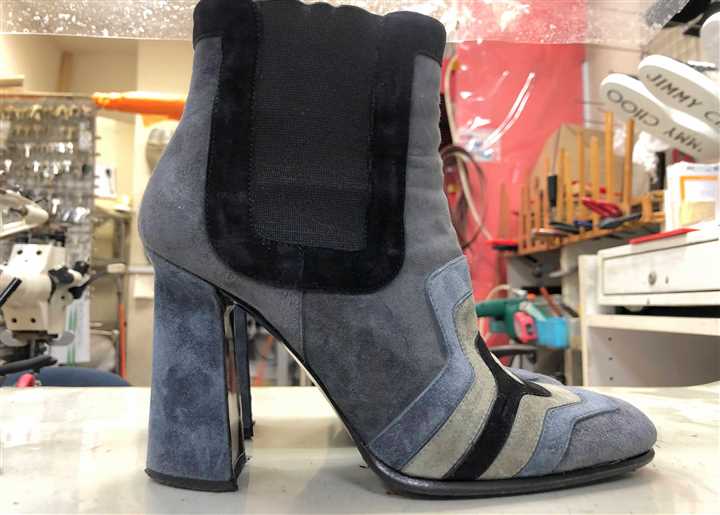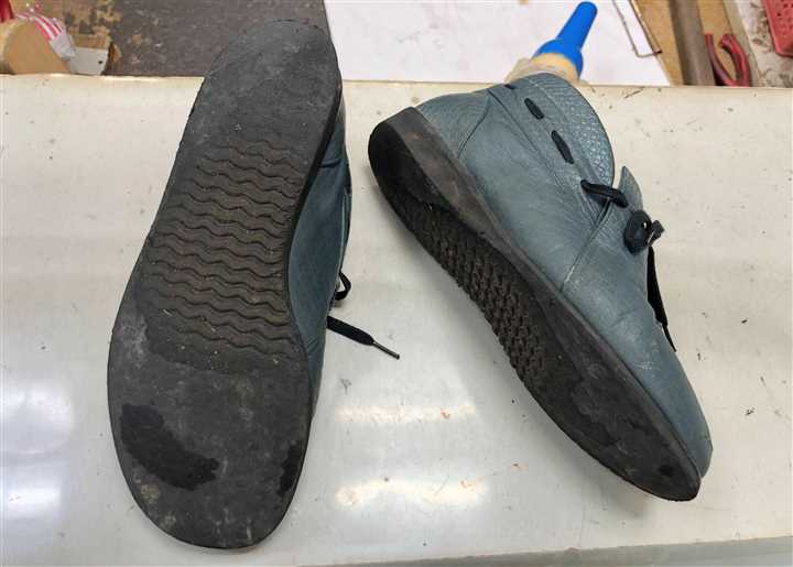 レディスハーフブーツのカカトの貼替え修理です