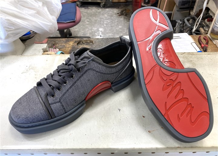 長年の修理実績と知識でルブタンのレッドソールにプロが施工いたします |