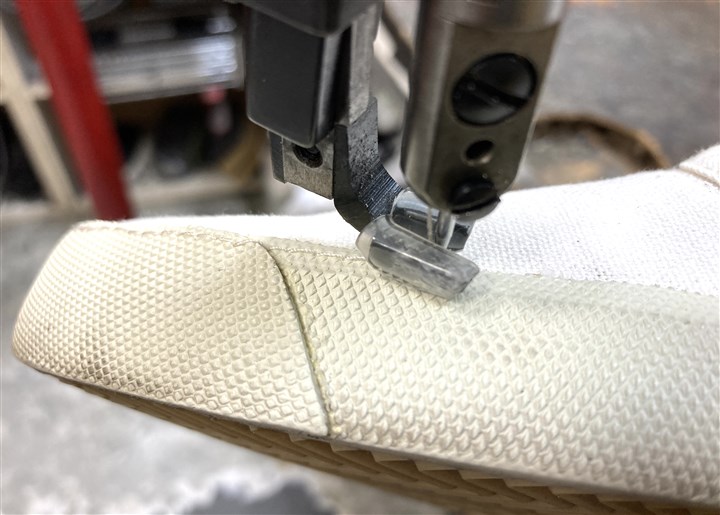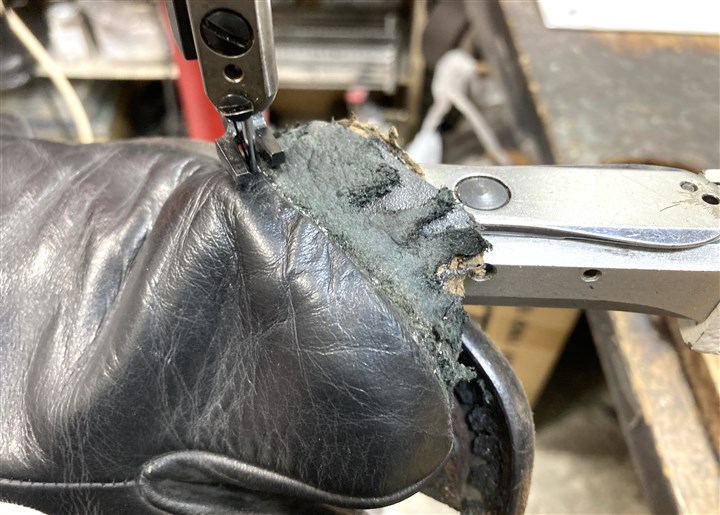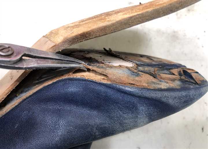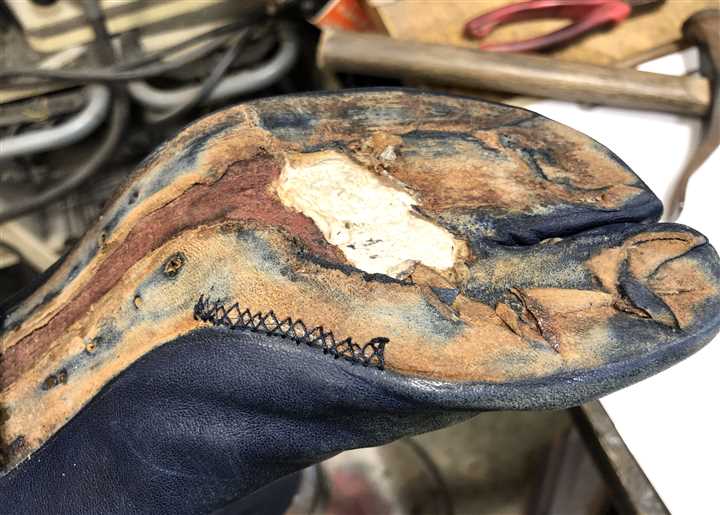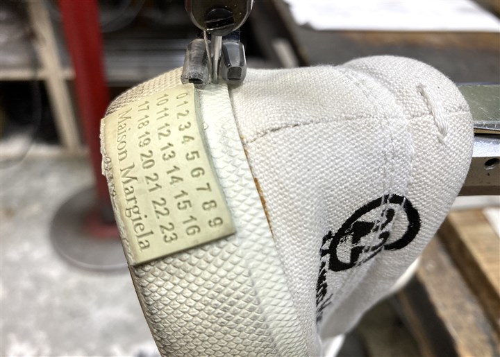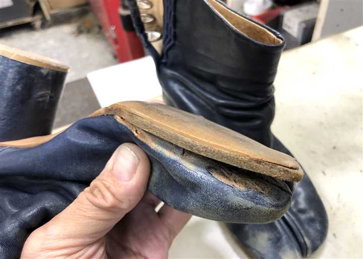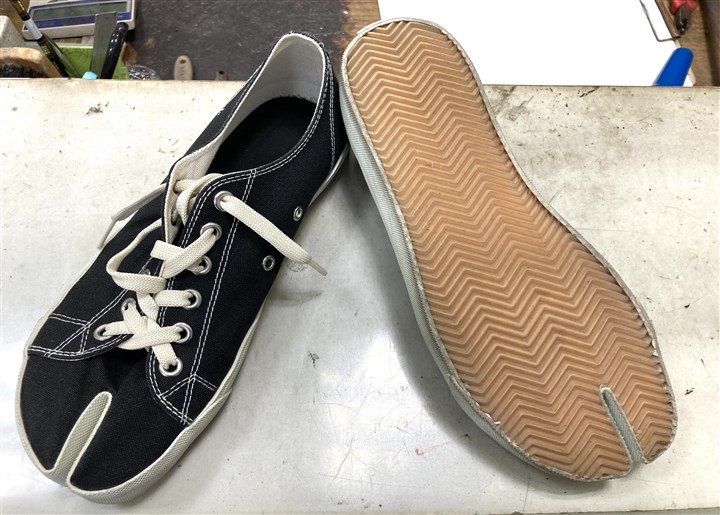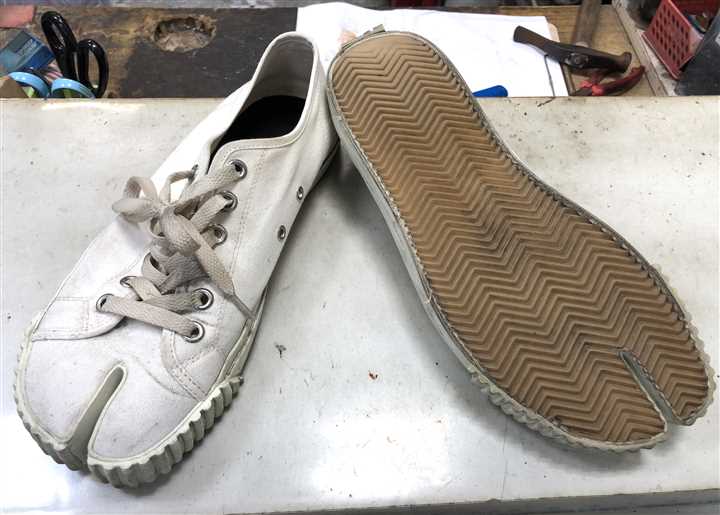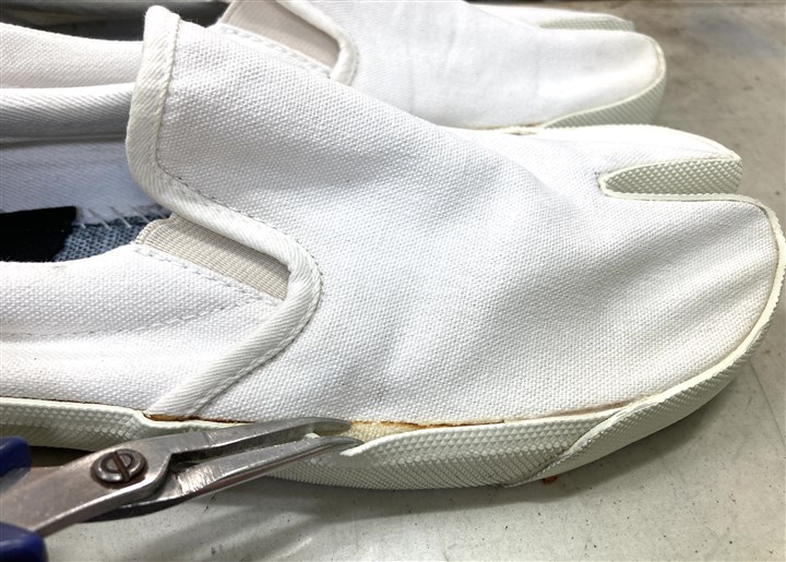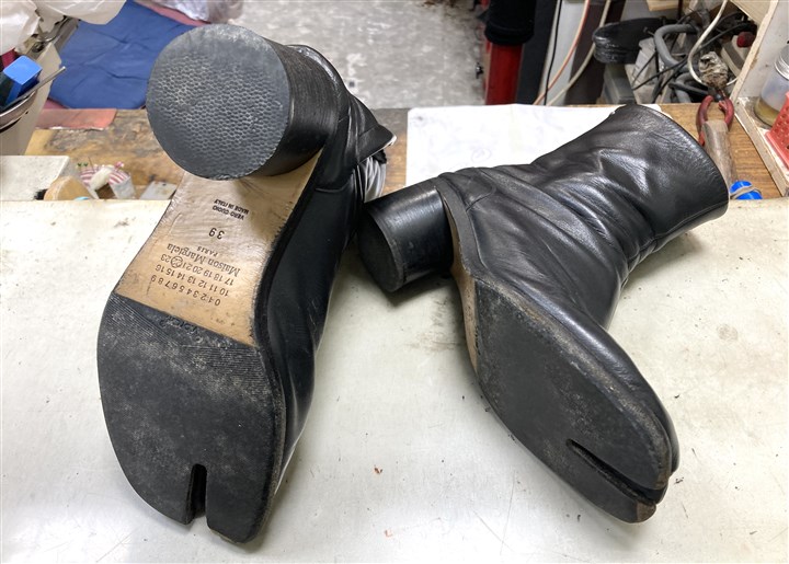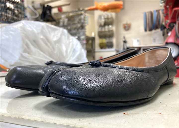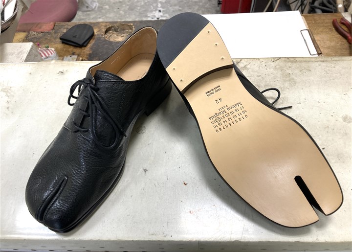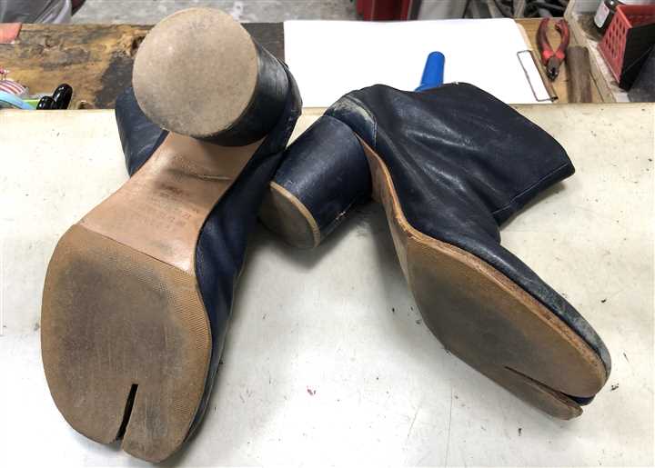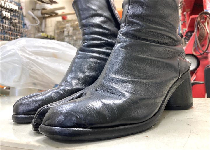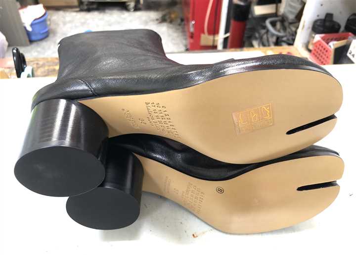 長年の修理実績と知識でマルジェラの足袋系の靴を専門家が修理します |