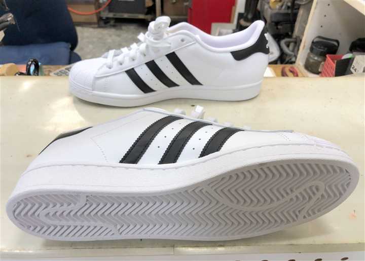 アディダス(adidas)スーパースターのソールをハイパーVシートで補強します