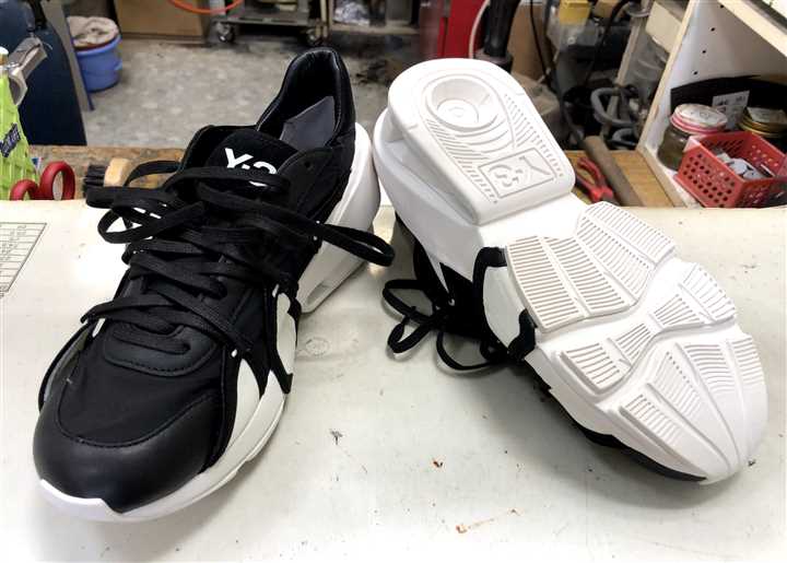 Y-3のスニーカーのソール補強修理です個性的なデザインが特徴のモードカジュアルブランド、Y-3です 今回はセパレートタイプのソールにゴムを貼ります ![]() ![]() ![]() 一見ソール補強や修理はできないように見えますがご安心ください(^^)匠の技でキレイにゴムを貼っていきます それぞれの接地面を薄く削り、前3箇所には6ミリ厚のクレープゴムを貼り、減りやすいカカトはミシュランヒールで強化しています ![]() ![]() ![]() これでソールをバッチリ保護できていますのでガンガン履くことが出来ますね(^^) それぞれのゴムが減ってきた際には簡単に貼替えも出来て便利です 今回の修理金額は両足で13200円です 状態によって料金は前後します |