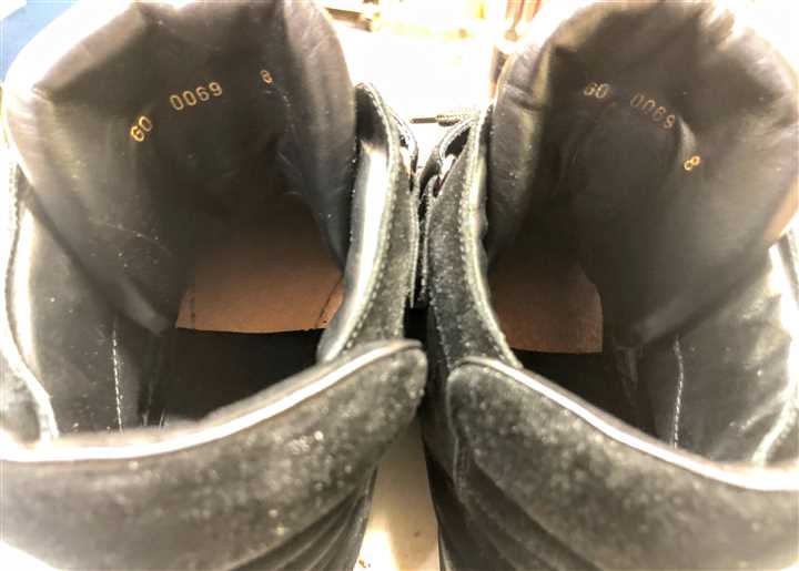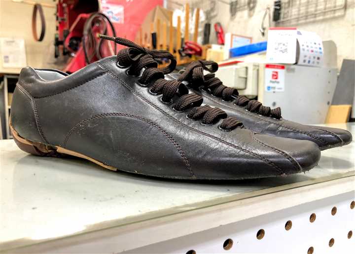 スニーカーのオールソール交換修理ですカカトが減りすぎてアッパーが地面に当たる寸前です(^^) これ以上減るとカカトの革に穴が空きますので ギリギリのタイミングでしたね ※穴が空いても修理できますが、よりデザインが変わります ![]() ![]() ![]() ![]() ソールを全て剥がしてしまい つま先にかぶさっていた接着跡に革を縫い付けます その上で、ソールに10ミリのスポンジを貼り 前を薄く削ってから底縫いをかけ 同じスポンジをカカトに積んでから 接地面に6ミリクレープゴムを貼って仕上げています 今回は ・つま先の革がこげ茶の表側 ・スポンジミッドソールは黒 ・ゴムアウトソールはこげ茶 になっています ![]() ![]() ![]() ![]() 革、スポンジ、ゴムソールの色を変えれば 仕上がりの印象をガラリと変えることができます 一例で言いますと ミッドソールを白にするとニューバランスのように スニーカー感が強くなります すべて同じ色にすると一体感が出ます このあたりはお好みでお選びくださいませ(^^) 今回の修理金額は両足で28600円です 状態によって料金は前後します |