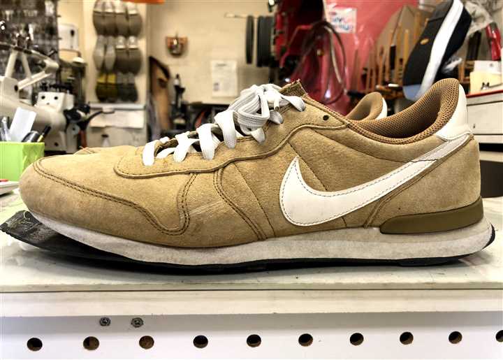 ナイキ(NIKE)のオールソール交換修理ですアウトソール剥がれでご依頼されたのですが ソール自体も剥がれていましたので 丸ごと作り直すことになりました(^^) ![]() ![]() ![]() ![]() 古いソールを剥がし カカトのカップの状の樹脂も剥がして イチから作り直します カカトカップは革を縫い付けて同じような形にし 10ミリのスポンジを底に縫い付けて土台にします 同じスポンジをカカトにも積んで高さを出し ビブラム2002ソールを貼って仕上げました ![]() ![]() ![]() ![]() これで靴本体とソールは剥がれません(^^) (縫い付けてるので) アウトソールも簡単に貼替えできますので メンテナンスもしやすいですね〜 カカトが減ったら部分的な修理をして アウトソール全体が減ってきたら貼り替えて・・ そうやって長く履いていけますよ♪ 今回の修理金額は両足で37400円です 状態によって料金は前後します |