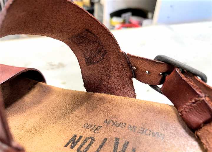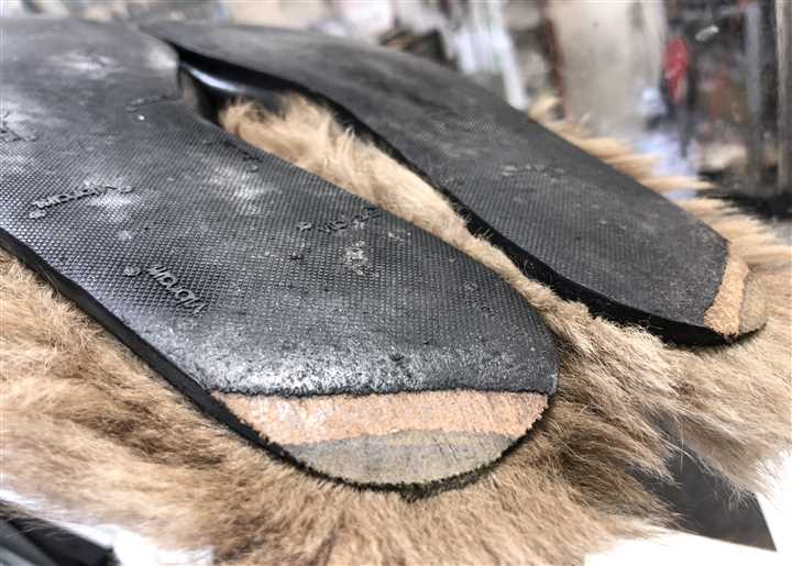 エルメス(HERMES)のサンダルのソール補強ですこういう修理をお受けすると冬の終わりを感じますね(^^) ![]() 接地面の凹凸を削り落とすと ソールの厚みが半分以下になってしまい 削る熱による素材の傷みが気になりますので 表面を薄く削り、凹凸をそのまま残した状態で 淵から少し内側のラインでゴムを貼っています 4ミリ厚のクレープゴムです ![]() ![]() ![]() ![]() こうしてゴムを貼っておけば ソールを消耗品にせずに済みますね(^^) カカトが減ったら部分貼替えできますが カカトを強化するとカカトだけ重くなるので 同じゴムでの部分貼替えがオススメです 今回の修理金額は両足で7700円です 状態によって料金は前後します |