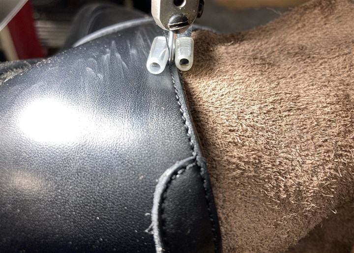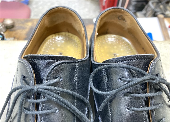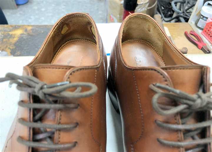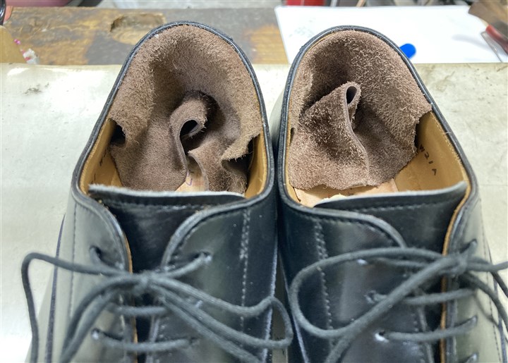 紳士革靴のカカト内側、腰裏部分の破れ修理です