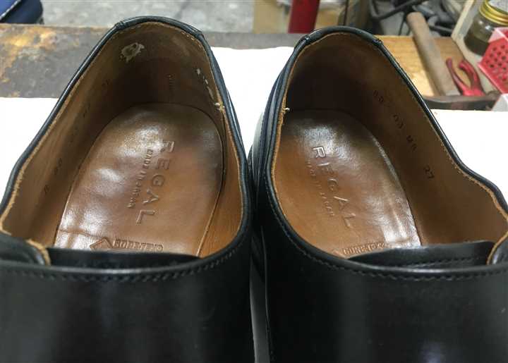 リーガル(REGAL)の紳士靴のカカト内側とソールカカトの修理です |